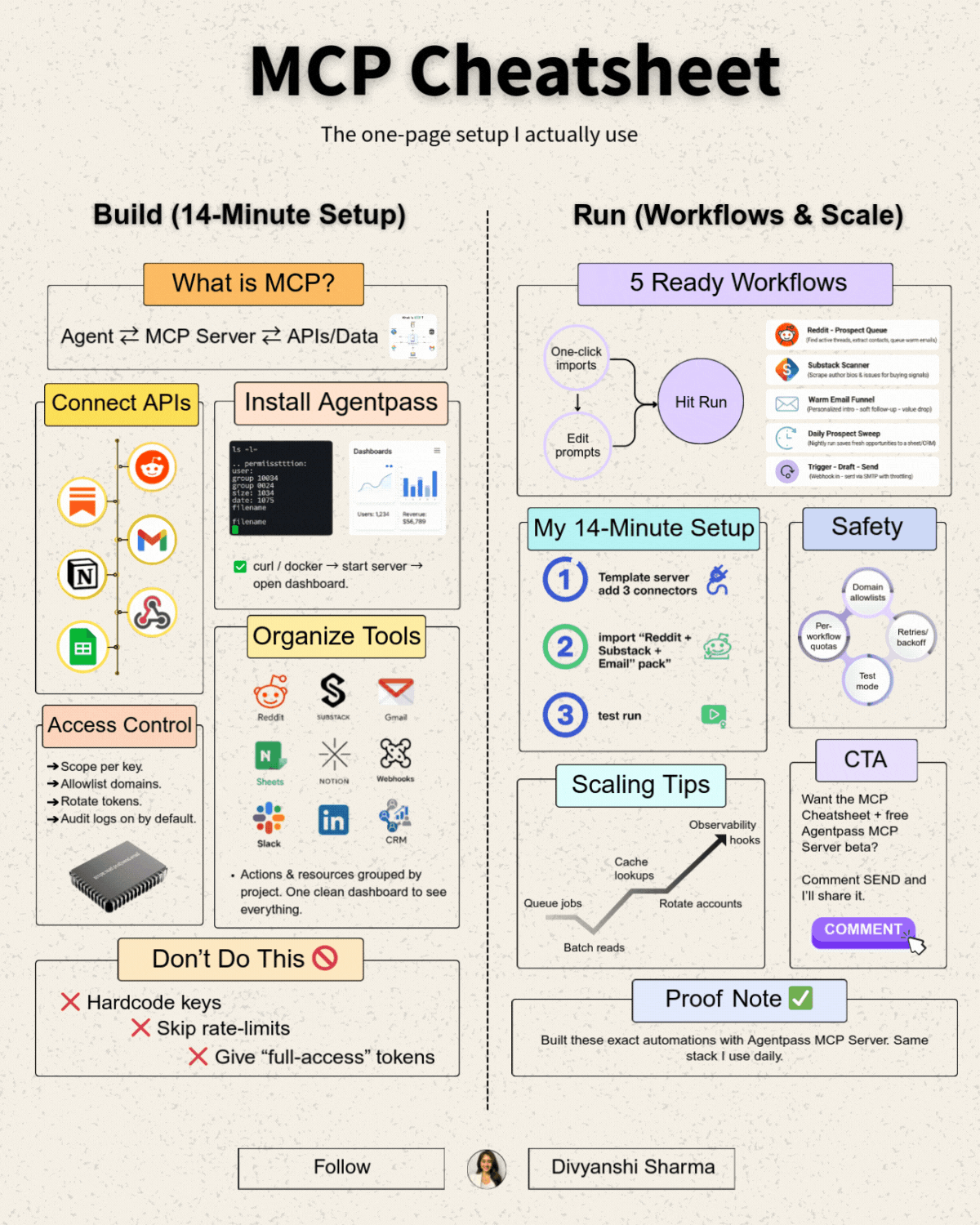 Accounts & API keys: Reddit (script app), Substack (export/API), Gmail/Google Cloud (OAuth), Slack (bot), HubSpot (Private App), Smartlead (API), Clay (API).
